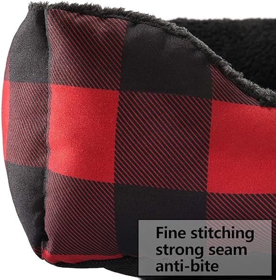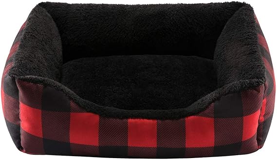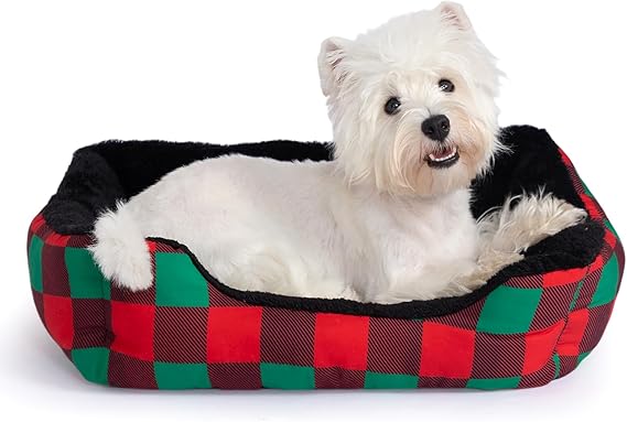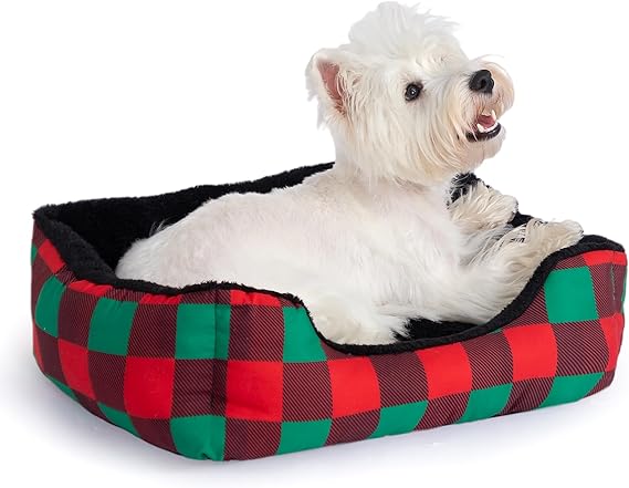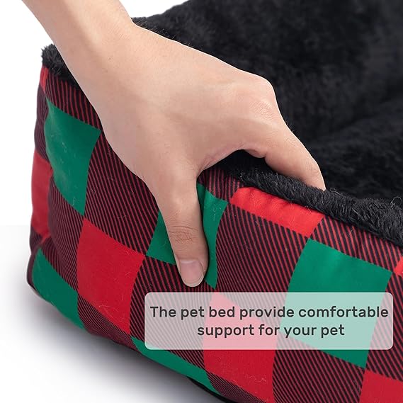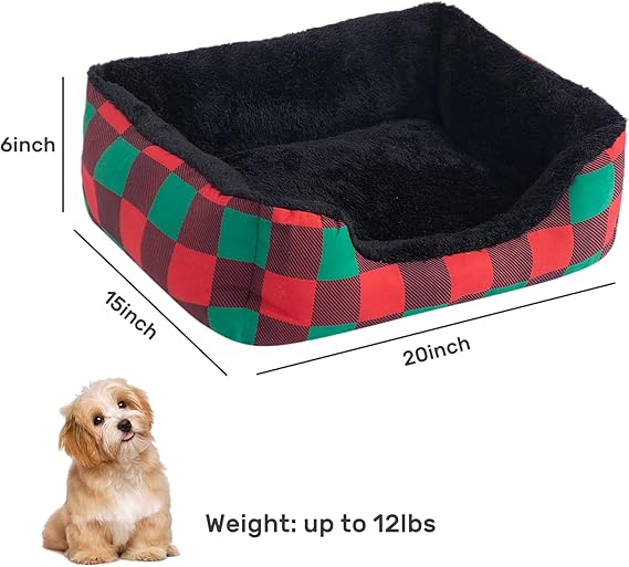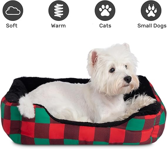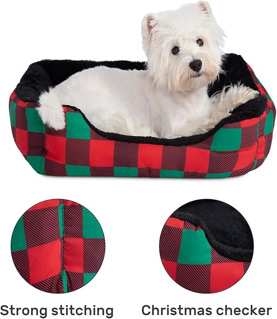 Hollypet Printed Flannel Rectangle Plush Dog Cat Bed Self-Warming Pet Bed, Christmas Red and Green Check