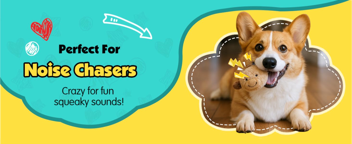 - Loud & Clear Squeak Every Time: Upgraded plastic springs fast, delivering a high-pitched squeak with every squeeze. Loud and clear—but never annoying—the fun sound grabs your dog's attention and keeps them happily engaged