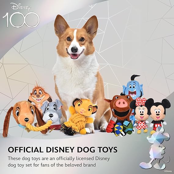 Bring the magic of Disney to your pets’ playtime! This Disney for Pets Pluto knotty rope pet squeaky toy is inspired by Pluto of Mickey and Friends. You’re sure to have a roaring good time playing tug and toss with your pup using the sturdy knotted rope body of this fun and interactive dog toy. This dog toy features flattie style plush limbs and an oh-so-tuggable rope tail. Plus, its ears feature a crinkle sound and texture that dogs go wild for. There is even a squeaker in the head, making this a squeaky dog toy that will inspire hours of playtime for your pooch. Your pet sure will feel they love when they snuggle and play with this adorable Pluto dog toy. The Pluto Knotty Rope Toy for dogs features pet safe plush features, with no hard plastic parts or small external pieces as potential choking hazards. Instead, all design details are either embroidered or screen printed. This dog chew toy measures about 9 inches tall, making it the perfect size for medium to large dogs to snuggle, fetch, carry, and chew. As with all dog toys, please supervise your pet when they play with this toy. This Pluto dog toy is a perfect gift for Disney fans and their pets! It’s sure to be king of the toybox! Our Pluto dog toy is an official Disney pet toy, making it a fun gift dog toy that any Disney fan would love. Be sure to check out our whole collection of Disney for Pets toys for both dogs and cats, including a wide array of toys inspired by your favorite Disney stories!