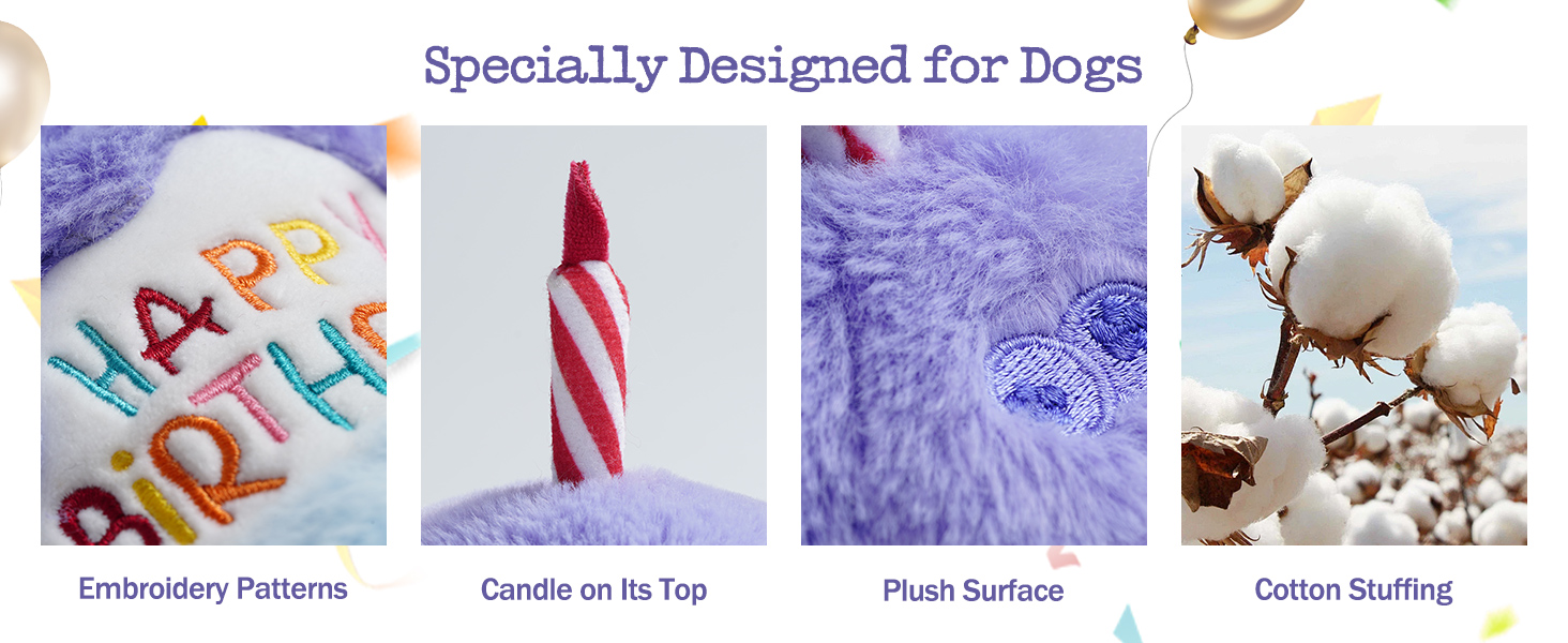 - Birthday Party Decoraction: Celebrate for your furry friend's birthday with this adorable cream cake decoration! This plush cake toy will light up the party with its candle and embroidered blueberries design
