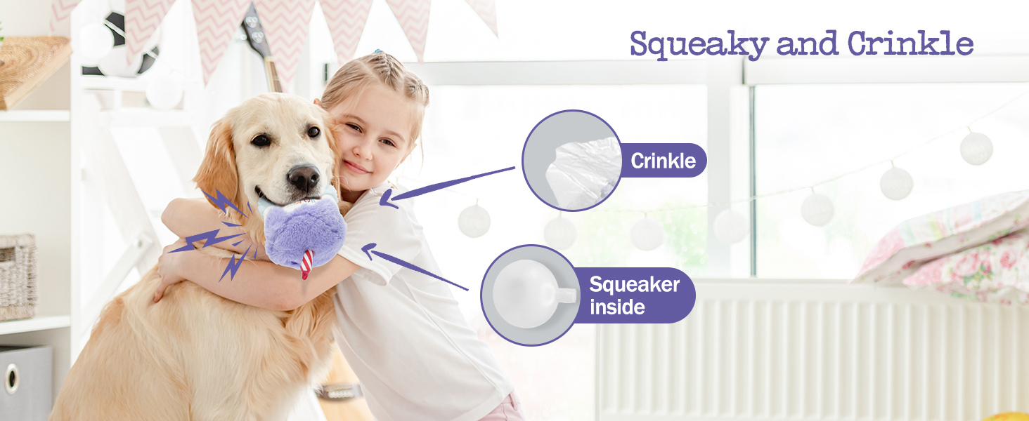 - Crinkle and Squeaky Dog Toy: Crinkle paper layers and hidden squeaker keep dogs engaged for hours. More than just a decoration! A good birthday present for you and your dog to have a joyful playtime