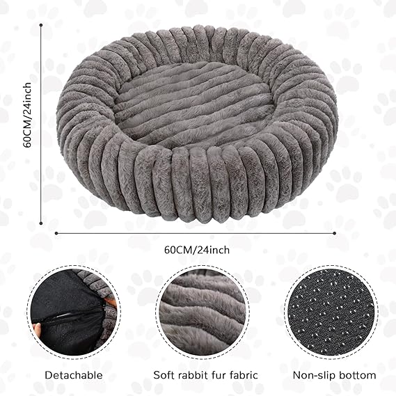 Cat Bed Round, Washable Calming Pet Bed, Ultra Soft Puppy Bed for Small Dogs with Non-Slip Bottom(24×24inch, Grey)
