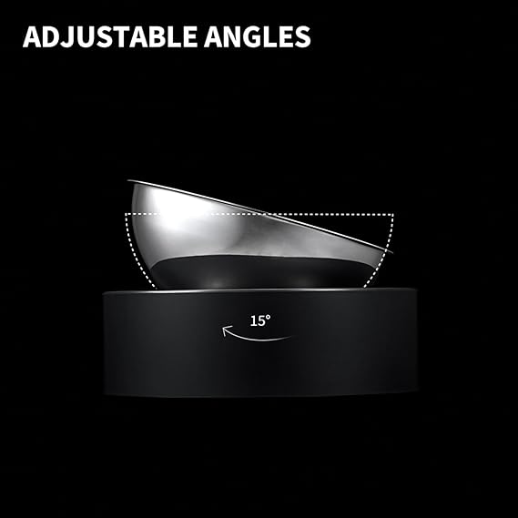 - How to adjust the bowl angle and place the bowl? For the 15 degree position, please place the bowl in the upper groove, and clockwise rotation to tighten. At this angle, the bowl is tilted to make it easier for pets to eat. For the horizontal position, please place the bowl in the below groove and clockwise rotation to tighten. At this angle the bowl is horizontal.
