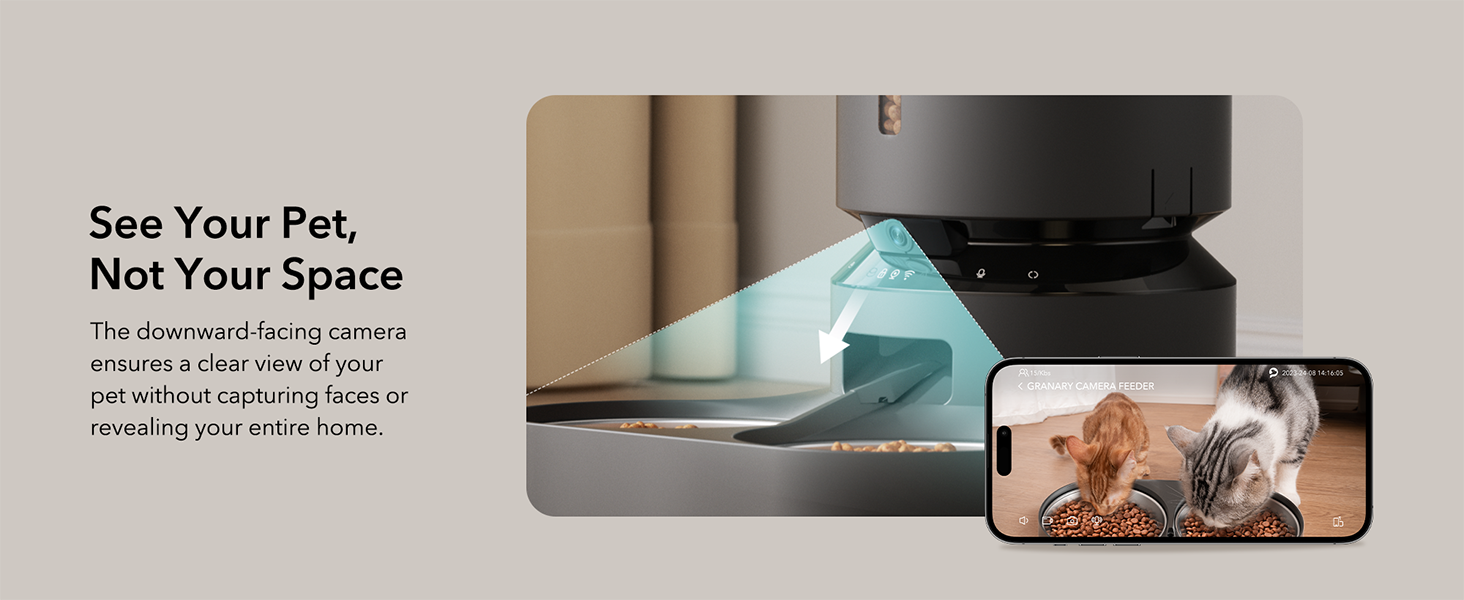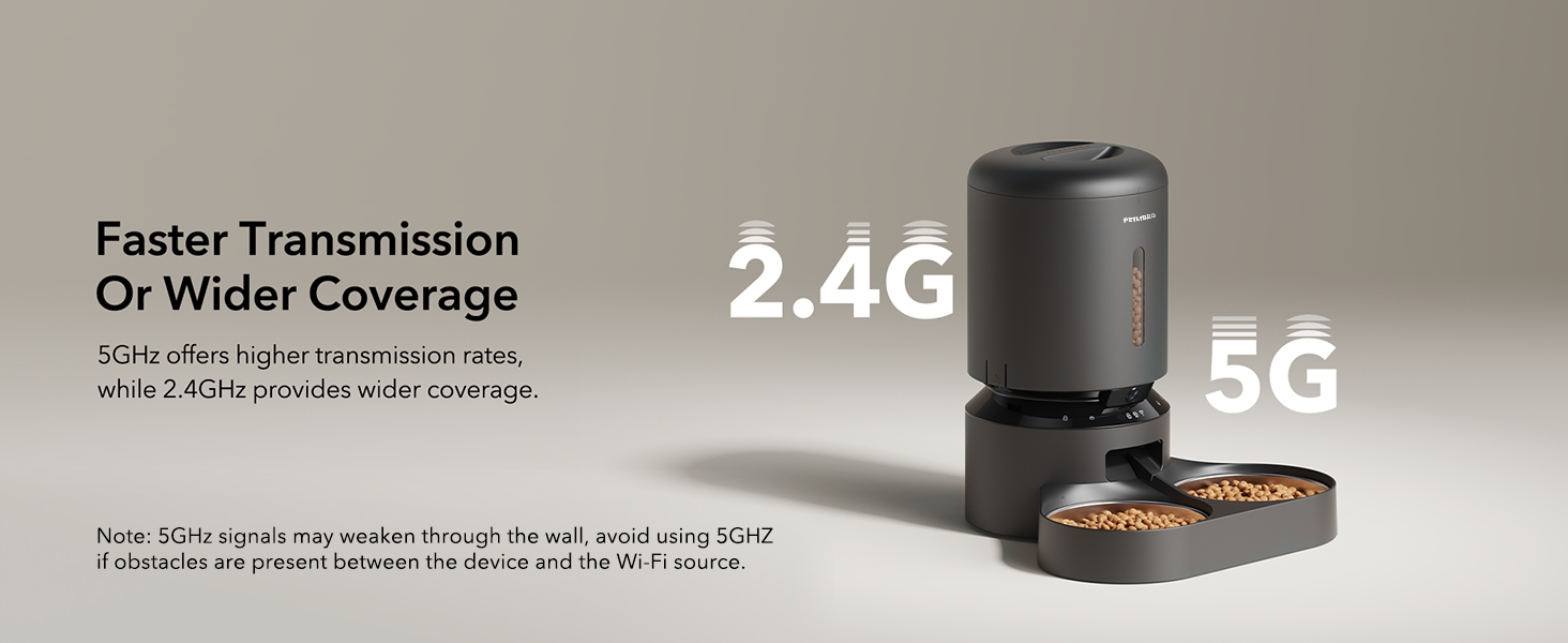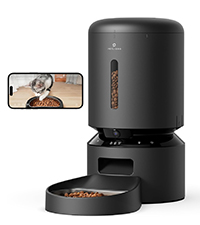 - Smart APP Control: PETLIBRO automatic cat feeder with Camera is 5GHz and 2.4GHz WiFi-enabled, allowing you to program and monitor your pet's meals anywhere, anytime through the PETLIBRO App for iOS and Android phones.You can set a feeding plan and schedule feeding time for two pets, up to 6 meals per day with 1-50 portions per meal. The feeding log can be used to check whether your pet is being fed according to the schedule you set. The feeder can be controlled by up to 5 people's smartphones