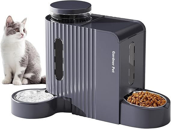 - 【Automatic Feeding System】-The food feeder and water dispenser automatically feed through gravity. There are two transparent windows for you to monitor, and you can refill it in time when the food and water are used up. The feeder cannot be connected to the APP and there is no timer feeding function. (This feeder doesn't need to be connected to a power source. Safer feeding for cats)