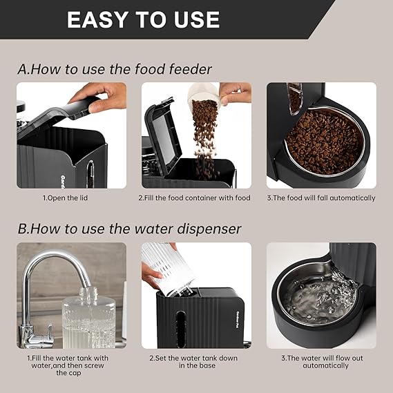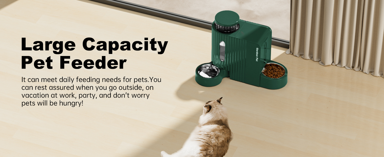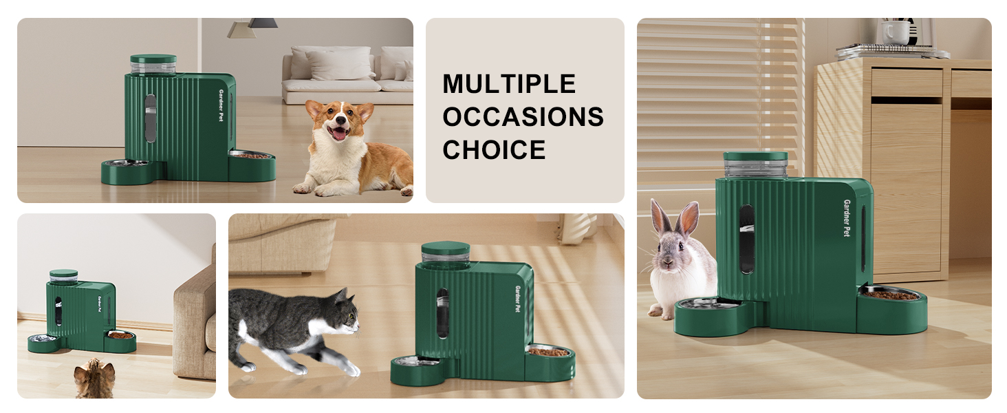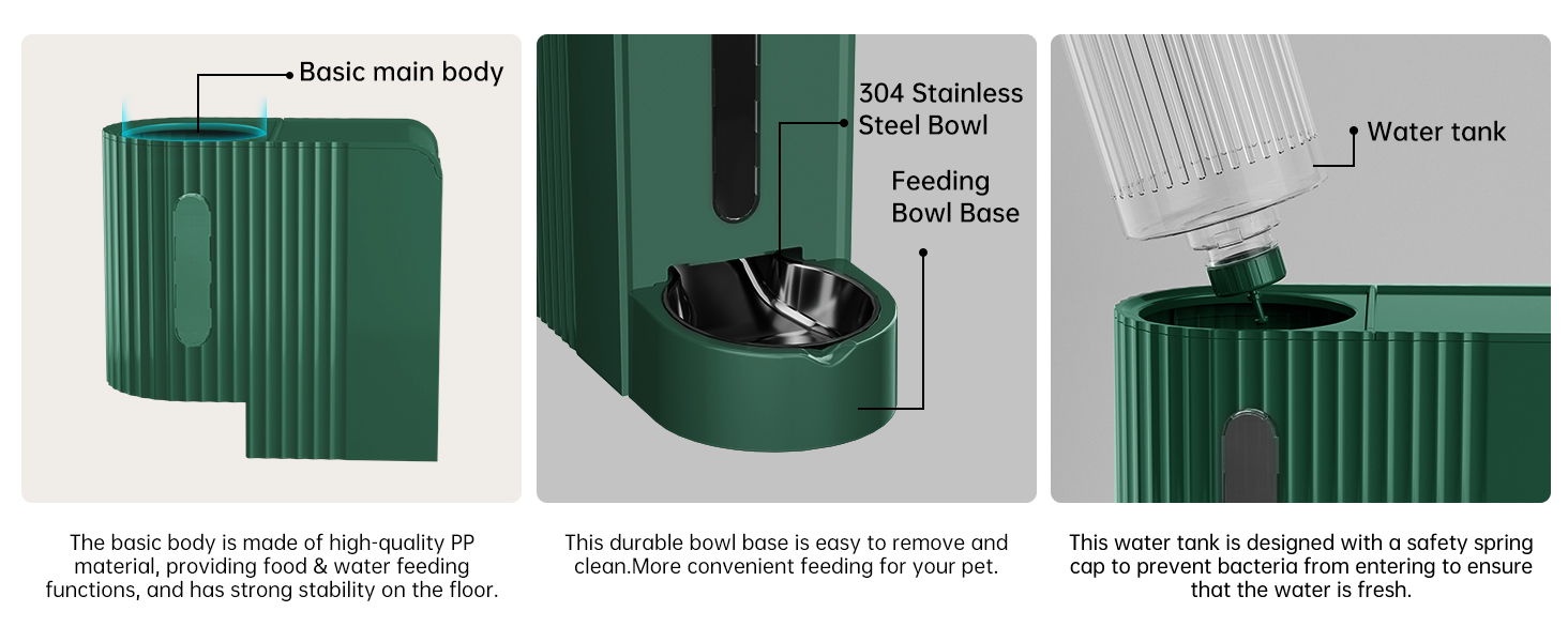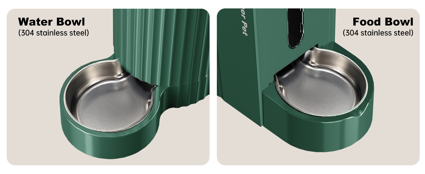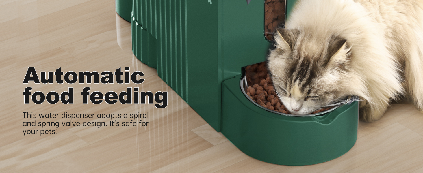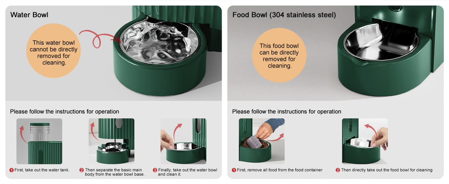 - 【The Right Food Feeder Part】-(1)Sufficient food supply:This is an automatic gravity food feeder, different from other electronic intelligent feeders. Our feeder will provide enough food to pets through gravity without worrying about them going hungry. About 3.5 ounces of food is provided to the bowl by gravity. The design of large food outlets is to reduce food jams. (2)Easily cleaned:After removing the food from the container, you can directly take out the stainless steel food bowl for cleaning. (3)NOTE: This feeder is intended for dry pet food only and does not work for wet food.