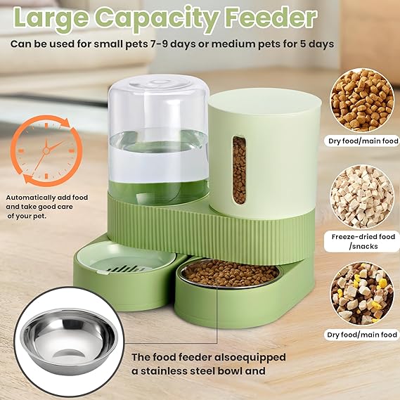 - 【Large Capacity Pet Feeder】 The automatic pet feeder can hold about 88oz food and about 2.4L water, can meet the needs of medium or large pets for 3-7 days—offering peace of mind during business trips, weekend getaways, or holiday gatherings, as your pet’s feeding needs are reliably managed.
