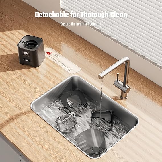 - Dual Power Supply & Easy Cleaning: Espelho cat food dispense supports AC power and 3xD size batteries(Not included) as a backup; even during power outages, your cat won’t miss a meal; the detachable design makes it easy to clean, ensuring thorough and stress-free cleaning effortlessly