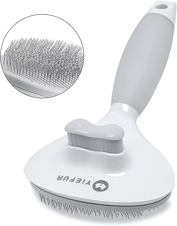- Durable & Long-Lasting: Our cat brush's thick stainless steel bristles and 150° bent needles ensure excellent performance and extended usage. It's the ultimate grooming tool that stands the test of time! Suitable for all pets - short, medium, or long-haired cats, dogs, and rabbits. Our self-cleaning cat brush effectively tackles shedding, leaving your pets looking their best!