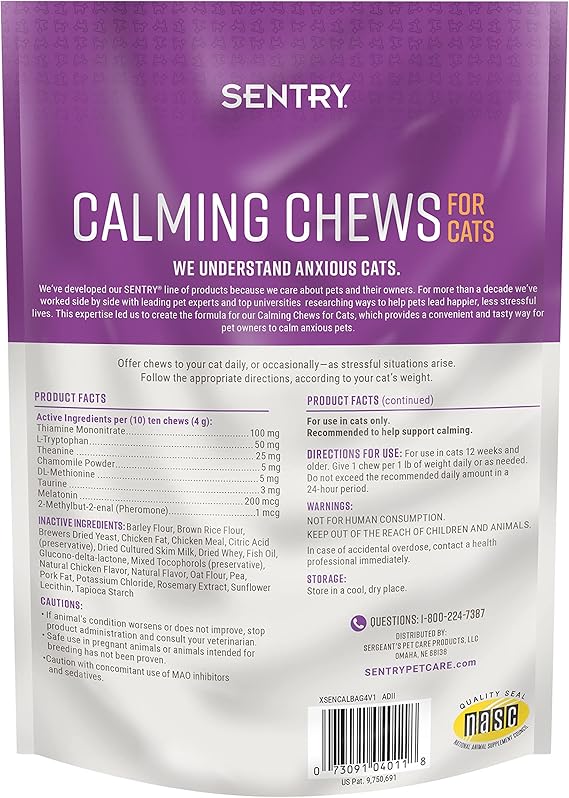 Sentry Calming Chews for Cats, Calming Aid Helps to Manage Stress & Anxiety, With Pheromones That May Help Curb Destructive Behavior & Separation Anxiety, Calming Health Supplement for Cats, 4 oz.