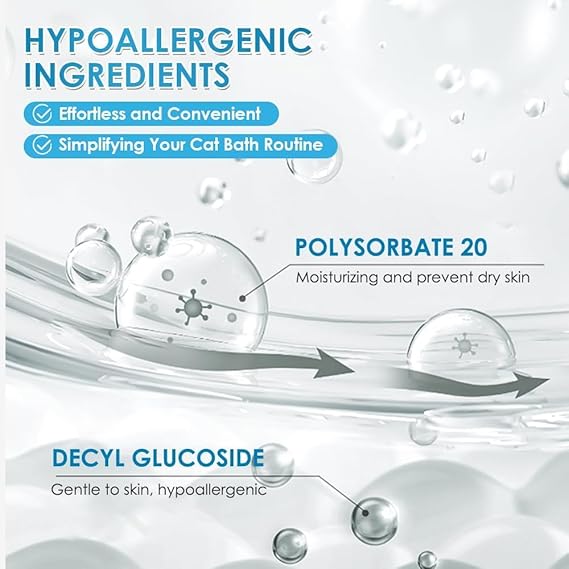 - GENTLE, 100% LICKING-SAFE & VET APPROVED — Your cat's safety is our priority. Our pH-balanced, hypoallergenic formula is enriched with skin-soothing Allantoin and plant-derived cleansers. It's completely safe for even the most fastidious groomer. Free from parabens and harsh chemicals, it's the trusted choice for sensitive skin, post-surgery recovery, and daily care.