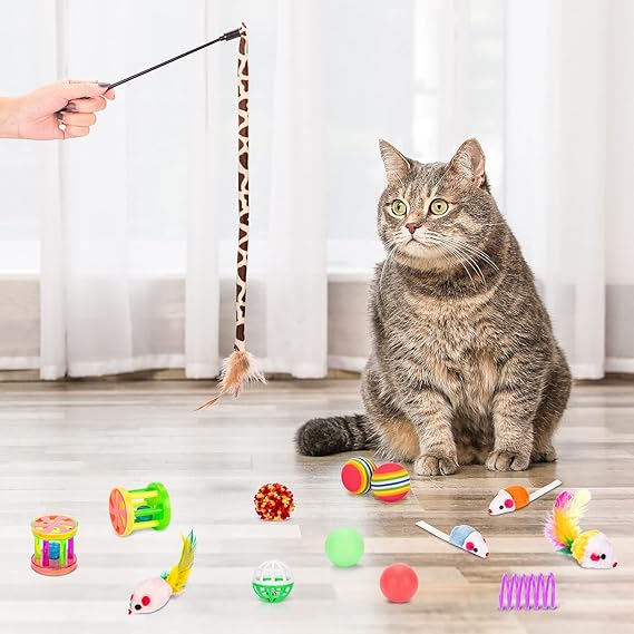 - Best Value Set: 33Pcs best kitten toys assortment . 1 x rainbow cat tunnel, 1 x rainbow fuzzy ball, 1 x cat feather teaser wand, 2 x jingle bell balls, 2 x rainbow balls, 2 x sponge feather balls, 2 x column bell toys, 2 x quiet balls, 2 x plush toys, 2 x cat spring tubes, 2 x cat springs, 4 x colorful mouse, 10 x pom balls