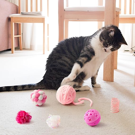 - [You Can Get] There are 10Pcs cat toys to meet the different needs of cats, including pink mice, bell balls, cat springs, crinkle balls, etc, which are pet toys specially made for indoor cats.