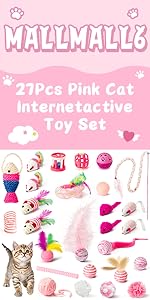 MALLMALL6 10Pcs Cat Toy Set Interactive Cat Toys Pack Including Feather Teaser Wand Cat Springs Mice Crinkle Balls and Pet Bell Balls, Puzzle Toys for Indoor Cats Gift (Pink)
