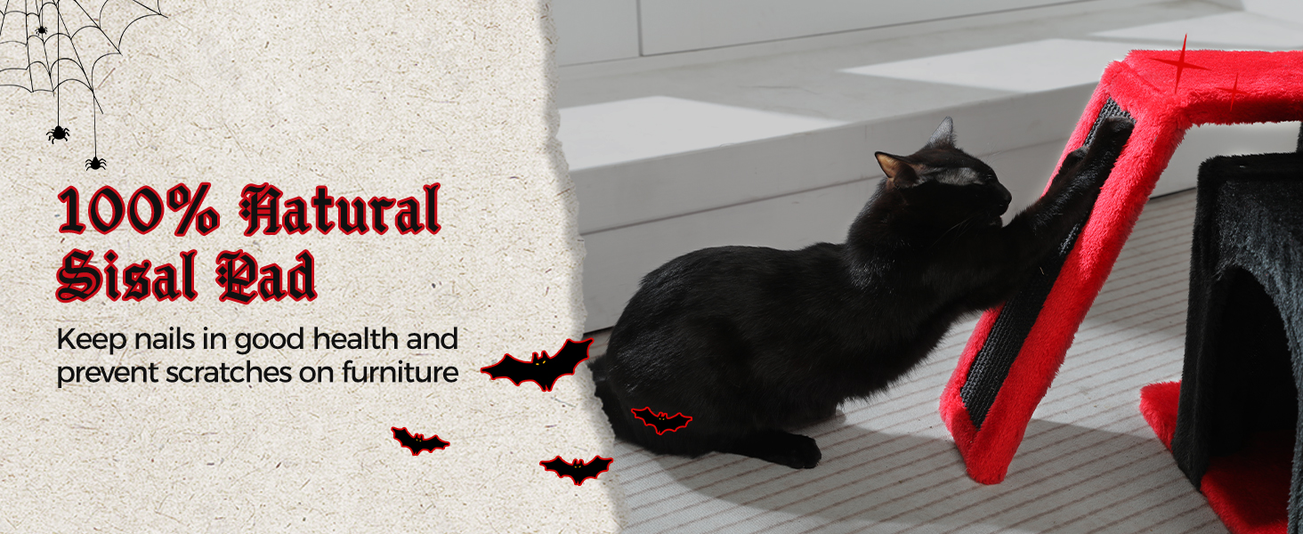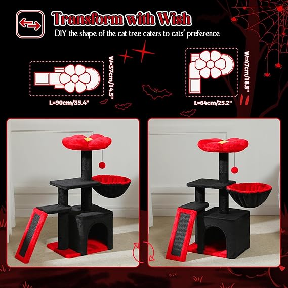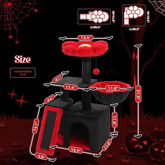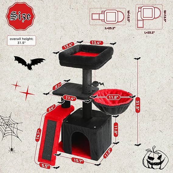 - Black Gothic Design: PETEPELA 31.5" small cat tree combines a Gothic cat tower, sisal scratching ramp, cozy hammock, and cat condo with top perch in one, providing your feline friend with a fun and functional space to play, rest, and relax