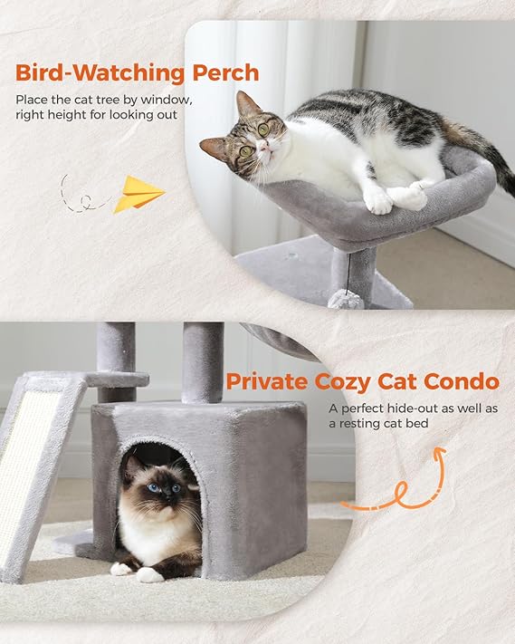 - Worry-Free Customer Service: This cat tree can be assembled in 15 mins, if you meet any problem while assembling or using, please feel free to conatct us, we will help you fix it until it's solved
