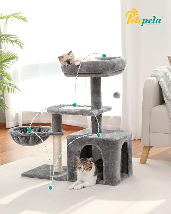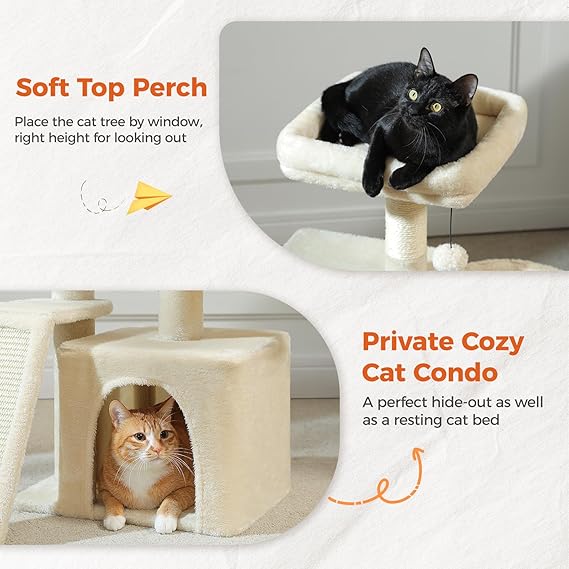 - Sisal Scratching Ramp: PETEPELA cat tree for small cats features a sisal scratching ramp, perfect for satisfying cat's scratching instincts and helping to keep their claws healthy and sharp, while also add stability to the cat tower tree structure