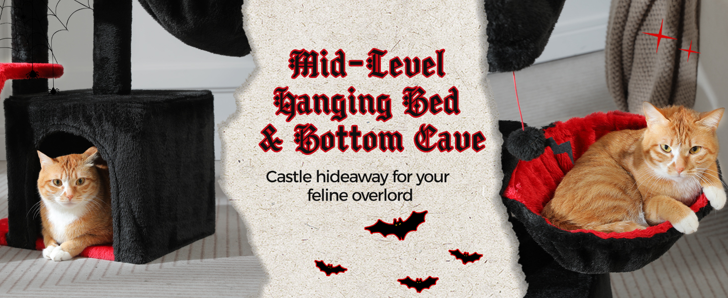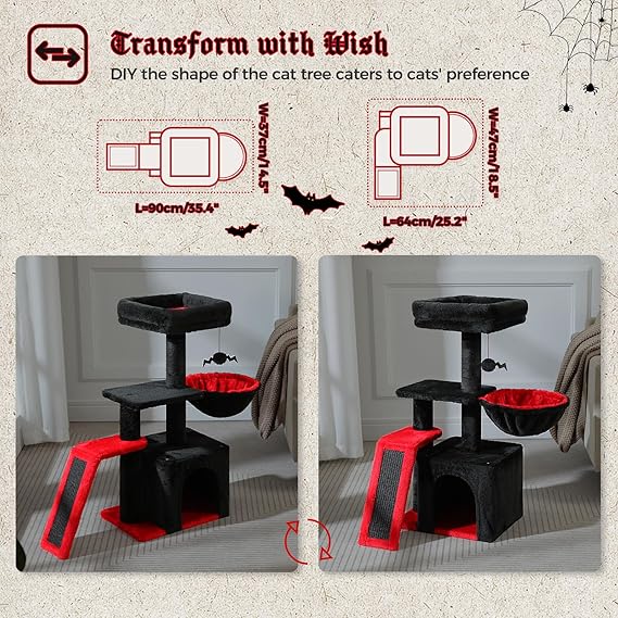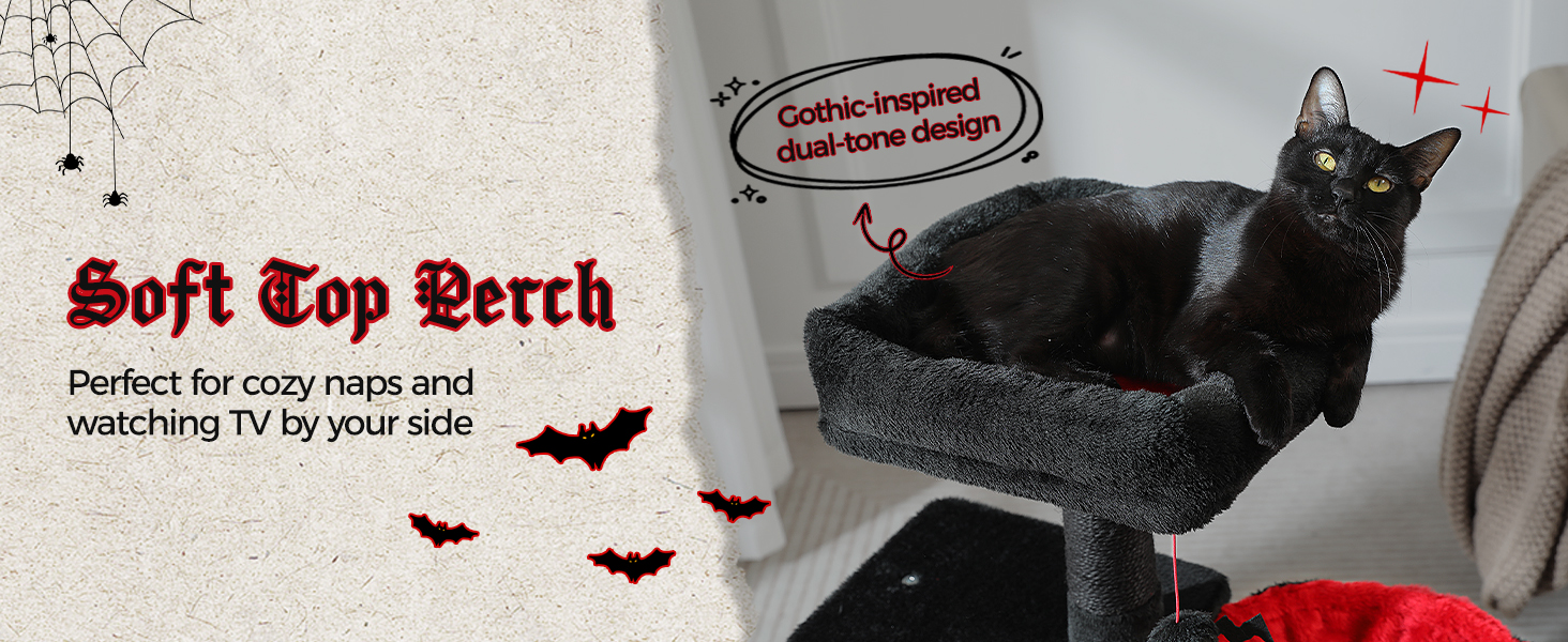 - Compact and Stylish: This small cat tree for indoor cats is designed to fit in any space without compromising on fun and functionality. The stylish gothic cat tree design adds a touch of mystery and classicism to your home