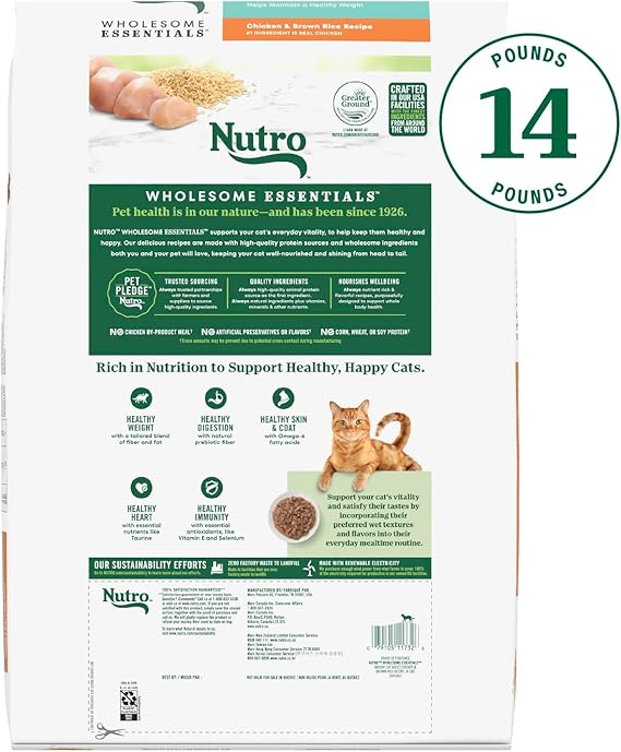Nutro Wholesome Essentials Indoor Dry Cat Food, Chicken & Brown Rice Recipe, 14 lb. Bag
