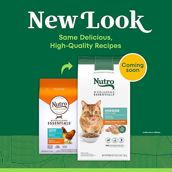 Nutro Wholesome Essentials Indoor Cat Food Dry, Chicken and Brown Rice Recipe is crafted with real chicken as the #1 ingredient, providing a flavor that your cat will enjoy. Nutro believes in the power of healthy cat food recipes with wholesome ingredients to support the health and happiness of your feline companion. Made with essential nutrients and antioxidants to support whole-body health, this dry cat food is designed to meet the specific needs of indoor cats. It supports healthy immunity with essential antioxidants like Vitamin E and Selenium and is rich in Omega 6 Fatty Acids for a healthy skin and coat. Crafted with natural prebiotic fiber to support healthy digestion, this healthy cat food recipe is made with natural ingredients plus vitamins, minerals and other nutrients. Nutro Wholesome Essentials Indoor Dry Cat Food Chicken and Brown Rice Recipe is a thoughtful choice for maintaining your indoor cat's overall well-being and vitality.