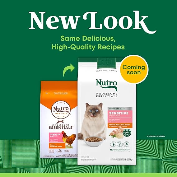Nutro Wholesome Essentials Dry Cat Food, Enhanced Care Sensitive, Chicken, Rice & Peas, 5 lb. Bag