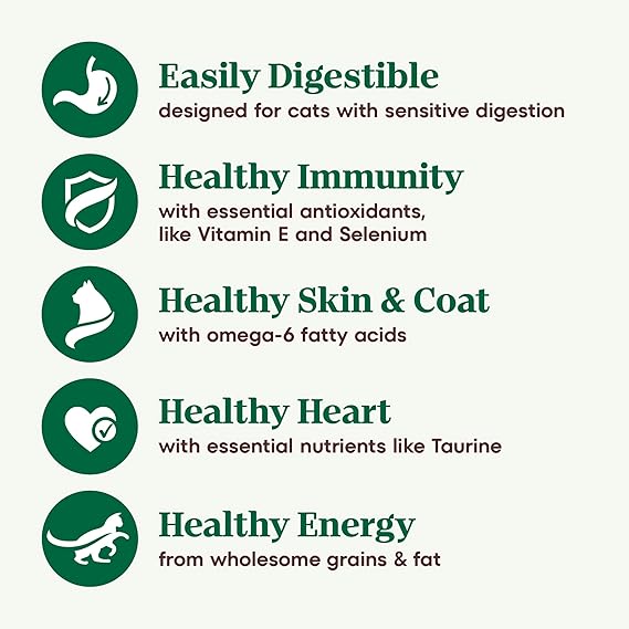Nutro Wholesome Essentials Dry Cat Food, Enhanced Care Sensitive, Chicken, Rice & Peas is designed to support cats with sensitive digestion. This sensitive diet cat food is crafted with natural prebiotic fiber and is made with real, recognizable, natural ingredients plus vitamins, minerals and nutrients, ensuring a balanced and nutritious meal for your cat. Rich in Omega-6 Fatty Acids to support a healthy skin and coat, it also supports healthy immunity with essential antioxidants like Vitamin E and Selenium. Made with real chicken as the #1 ingredient, this recipe provides a flavor that your cat will enjoy. Nutro Wholesome Essentials Dry Cat Food, Sensitive Stomach Cat Food, Chicken, Rice & Peas is a thoughtful choice for pet owners who want to provide their cats with a diet that supports their overall well-being.