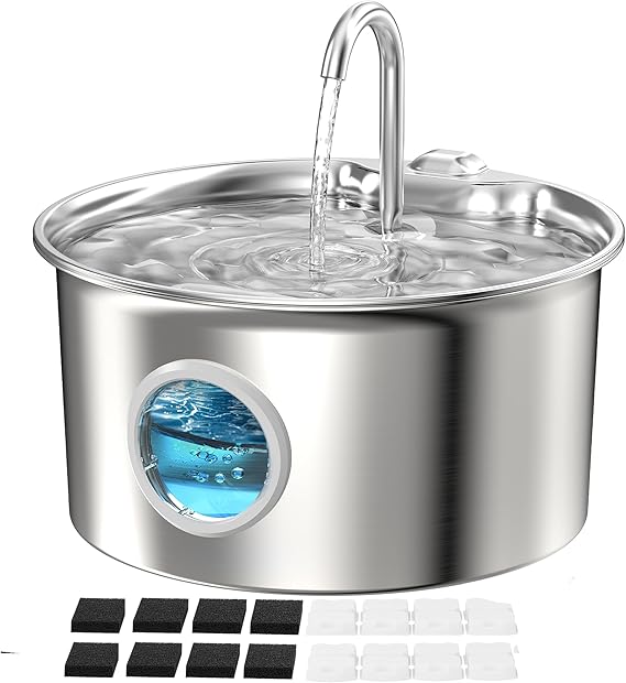 - Reliable Care for Your Pets ATMZIQXR upholds the philosophy of "Smarter care for pets, simpler life for owners." Our upgraded 2.6L (88oz) cat water fountain stainless steel ensures your furry friend stays hydrated for 7-9 days. You don't have to worry about it getting thirsty even when it's home alone.