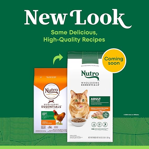 Nutro Wholesome Essentials Adult Cat Food Dry, Salmon and Brown Rice Recipe, is designed with wholesome ingredients to support the well-being of your feline companion. This dry cat food is made with real salmon as the first ingredient, providing a flavor that your cat will love. Crafted with natural prebiotic fiber to support healthy digestion, this healthy cat food recipe also supports healthy immunity with essential antioxidants like Vitamin E and Selenium. Rich in Omega-6 Fatty Acids to support a healthy skin and coat, this natural cat food recipe is made with real, recognizable, natural ingredients plus vitamins, minerals and nutrients. Nutro Wholesome Essentials Adult Dry Cat Food Salmon and Brown Rice Recipe is a thoughtful choice for your cat's every day vitality.