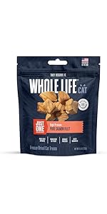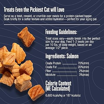 Whole Life Pet Just One Salmon Cat Treats are the ultimate solution for discerning felines, particularly those with picky eating habits or sensitive stomachs. These freeze dried cat treats are crafted from 100% human-grade salmon, ensuring that your pet receives only the quality nutrition. With no preservatives, fillers, or artificial ingredients, these treats stand out as a healthy choice for your cat, making them a great dry cat treats that support overall health and wellness. Each small batch of treats undergoes rigorous quality control and independent lab testing for harmful organisms, guaranteeing safety and peace of mind for pet owners. Proudly sourced and produced in the USA, these treats are freeze-dried to lock in essential nutrients and flavors, making them a fantastic option for freeze dried pet treats that your cat will love. Additionally, these versatile treats can be used as delicious cat toppers to enhance your cat's meals, providing a nutritious boost that makes every feeding time special. Whether your cat is an indoor explorer or an outdoor adventurer, these healthy treats serve as a great foundation for a balanced diet, ensuring they thrive and enjoy every bite. With Whole Life Pet Just One Salmon Cat Treats, you can confidently treat your feline companion to a snack that is both tasty and nutritious.