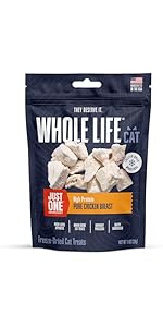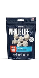 Whole Life Cat Just One Salmon Freeze Dried Cat Treats - Human Grade High Protein Food, Healthy Training Snacks, Freeze Dried Salmon Food Toppers, USA Made Natural Treats - 1 oz (Pack of 1)
