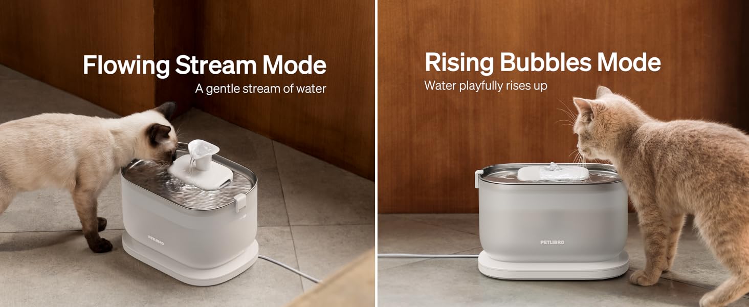 - Always Appealing - The PETLIBRO cat fountains for drinking feature a free-falling stream or bubble fountain mode to please even the pickiest of cats and ensure they stay hydrated to prevent kidney diseases. It's recommended to change the filters every two weeks to maintain your cat's health. (Please purchase PETLIBRO official filters replacement to avoid reducing the life of the cat water fountain)
