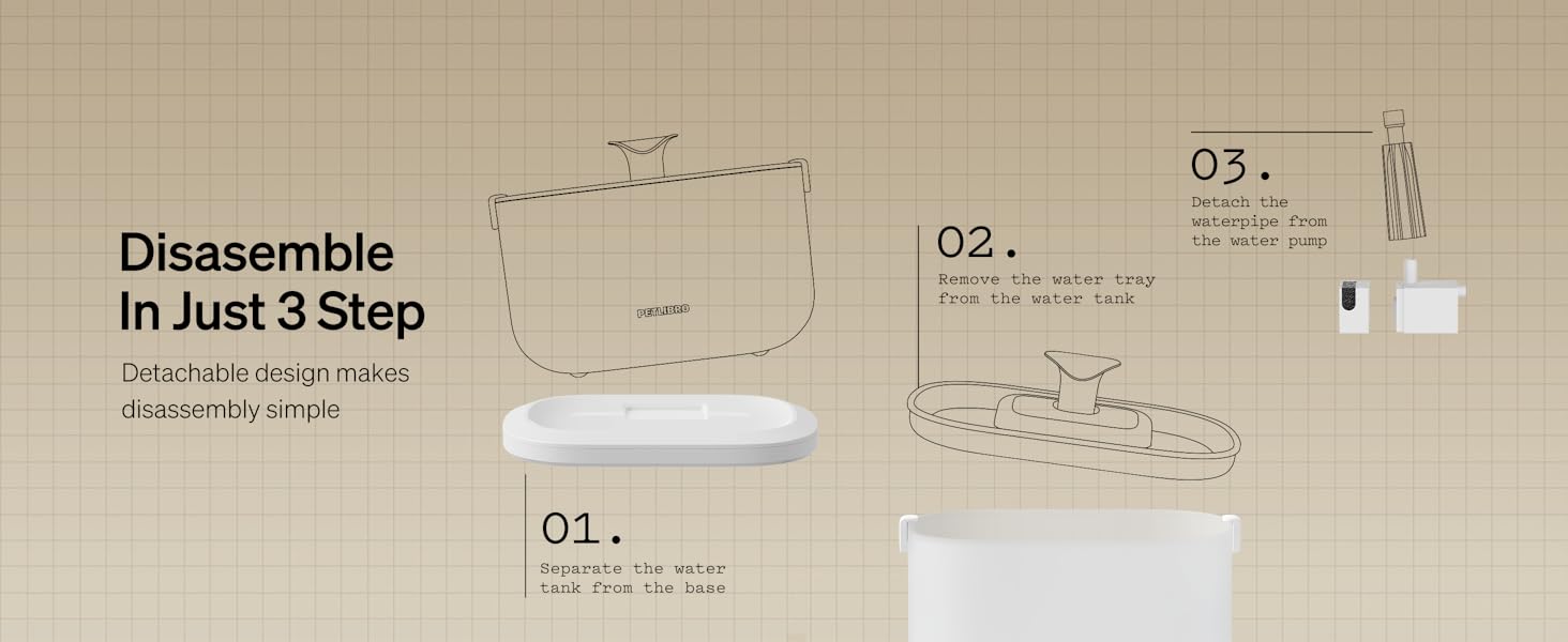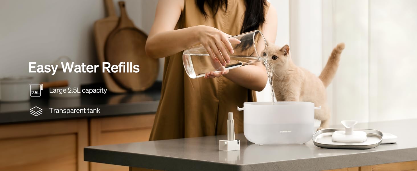 - Effortless Installation & Water Refilling - Installing the cat water dispenser is a simple process without any tools that takes just a few minutes. With a detachable water tank design, simply remove the tank from the base for convenient water refills. No Stress with PETLIBRO stainless steel cat water fountain.