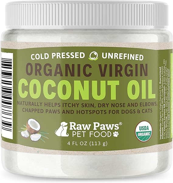 Raw Paws Virgin Organic Coconut Oil for Dogs & Cats, 4-oz - Treatment for Itchy Skin, Dry Nose, Paws - Hot Spot Lotion - Natural Hairball Remedy for Cats