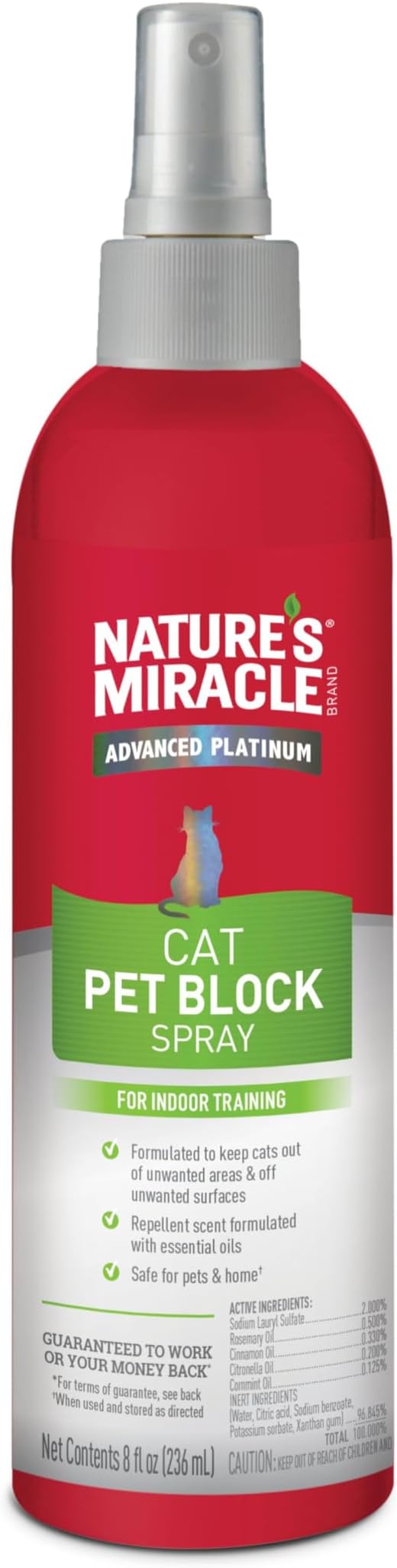Nature's Miracle Advanced Platinum Cat Pet Block Repellent Spray, 8 Ounces, Indoor Training Aid for Cats