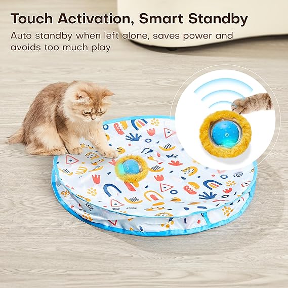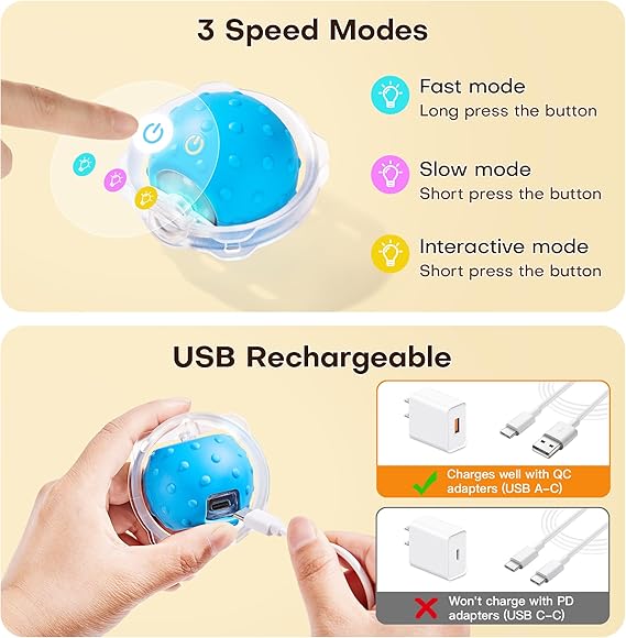 - Multi-Mode Fun: With three speed modes—fast, slow, and interactive—this electric ball toy adapts to your cat’s play style. Activated by touch, it keeps your pet entertained and stimulated for hours.