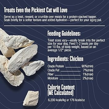Whole Life Pet Just One Chicken Cat Treats are the ultimate solution for discerning felines, particularly those with picky eating habits or sensitive stomachs. These freeze dried cat treats are crafted from 100% human-grade chicken, ensuring that your pet receives only the quality nutrition. With no preservatives, fillers, or artificial ingredients, these treats stand out as a healthy choice for your cat, making them a great dry cat treats that support overall health and wellness. Each small batch of treats undergoes rigorous quality control and independent lab testing for harmful organisms, guaranteeing safety and peace of mind for pet owners. Proudly sourced and produced in the USA, these treats are freeze-dried to lock in essential nutrients and flavors, making them a fantastic option for freeze dried pet treats that your cat will love. Additionally, these versatile treats can be used as delicious cat toppers to enhance your cat's meals, providing a nutritious boost that makes every feeding time special. Whether your cat is an indoor explorer or an outdoor adventurer, these healthy treats serve as a great foundation for a balanced diet, ensuring they thrive and enjoy every bite. With Whole Life Pet Just One Chicken Cat Treats, you can confidently treat your feline companion to a snack that is both tasty and nutritious.