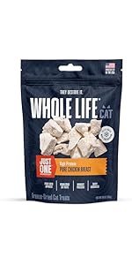 Whole Life Cat Just One Chicken Freeze Dried Cat Treats - Human Grade High Protein Food, Healthy Training Snacks, Freeze Dried Chicken Food Toppers, USA Made Natural Treats - 4 oz (Pack of 1)