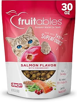 Fruitables Cat Treats Crunchy Cat Treats, Healthy Low Calorie Kitten Snacks, Made Without Wheat, Corn and Soy, Kitten Essentials, Made with Real Salmon and Cranberry, 30 Ounces