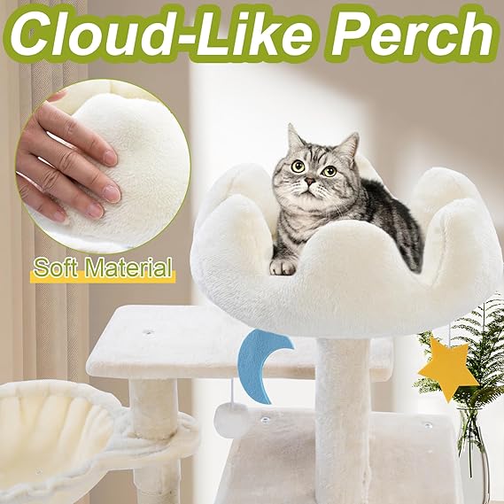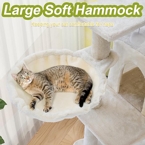 Cat Tree Tower with Metal Frame Hammock, 40'' Cat Trees for Indoor Cats Large Adult, Cat Towers with Scratching Post, Cats Condo Furniture with Cloud Top Perch, Cats Climbing Tower for Kittens(White)