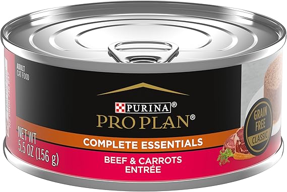 Purina Pro Plan Grain Free Wet Cat Food Pate, COMPLETE ESSENTIALS Beef & Carrots Entree Classic - (Pack of 24) 5.5 oz. Cans