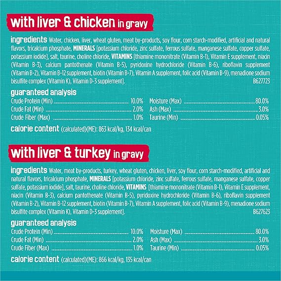 Mix up your cat's mealtime menu by giving her a choice of four scrumptious entrees found in this Purina Friskies Tasty Treasures wet cat food variety pack. Each recipe contains real poultry or fish, so she gets the delectable tastes she loves in every dish along with a rich, savory gravy or sauce for added deliciousness. With a combination of mouthwatering flavors and tender textures cats can sink their teeth into, this wet cat food variety pack delivers all the yum she craves. Because each serving contains essential vitamins and minerals to help support her overall health along with 100 percent complete and balanced nutrition for adult cats, this wet cat food gives you plenty to love too. Stock your pantry with this Purina Friskies variety pack, and deliver all of the goodness your favorite feline deserves at feeding time. It's proudly manufactured in Purina-owned U.S. facilities and undergoes regular checks for quality and safety throughout the production process.