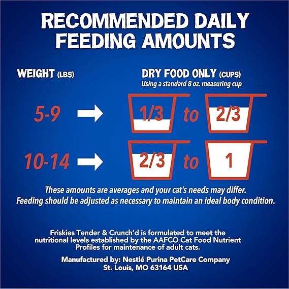 Give your cat a reason for happy meows when you add Purina Friskies Tender and Crunchy Combo dry adult cat food to her daily feeding regimen. Meaty tenders and crunchy bits give her more to love in every bite, and the pleasing shapes get her excited to nibble her way to bliss-filled satiety. This cat food with flavors of real chicken lets you feel good about giving your cat a high-quality meal, and the combination of chicken and beef flavors accented with garden veggies delivers the taste cats crave. With 100 percent complete and balanced nutrition for adult cats, this formula features protein to support her strong muscles, taurine and vitamin A for healthy vision and antioxidants to promote the health of her immune system. Let her come running as she hears the sound of the delectable morsels filling her bowl, and watch as she delights in every bite. With so much yummy goodness, this dry kibble cat food satisfies her hunger and shows her how much you care.