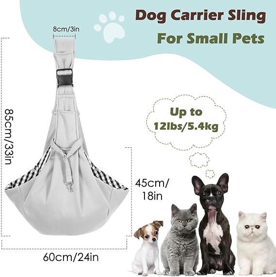- 【GO OUT NOW】The cat sling bag fabric is Suitable for small pets up to 12 pounds. Double-sided available dog carrier sling, simple and fashionable, suitable for carrying small pets, dogs, cats, etc., immediately take them to set off to the mall, subway, grocery store, hospitals, parks, daily walks, or long-distance trips.