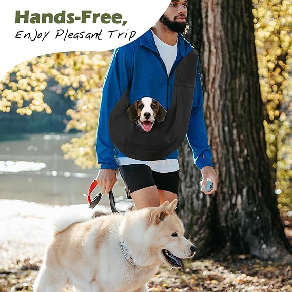 - 【LOW-BURDEN TRAVEL】Widened straps of this pet sling can increase the contact area between the strap and shoulder, reduce the pressure on the neck and shoulder, with a cozy cotton layer inside, which can effectively relieve shoulder pain, and make your trip with your pet more enjoyable. The shoulder strap of the puppy sling carrier comes with a storage pocket for storing keys, cards, and other gadgets.