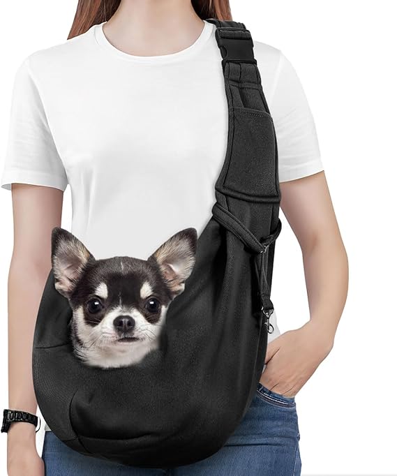 Pawaboo Small Dog Sling Carrier, Reversible Hands Free Dog Sling Carriers for Small Dogs and Cats, Puppy Slings Carrier with Adjustable Strap Buckle & Safety Harness, Puppy Essentials, Black