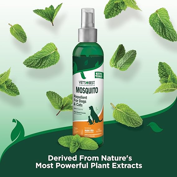 Vet's Best Natural Mosquito Repellent Spray for Dogs and Cats - Plant-Based Protection with Certified Essential Oils - DEET-Free Outdoor Pest Repellent for Pets - Natural and Safe - 8 oz Bottle