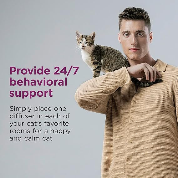 See how 1 week could improve your cats' behavior! The Comfort Zone Cat Calming Diffuser emits a continuous, fragrance-free, and drug-free mist that mimics natural cat pheromones, signaling safety and familiarity. Feeling safe helps calm your cat and promotes positive behavior, letting your cat’s full personality shine. This pheromone diffuser helps reduce unwanted behaviors like urine marking, excessive scratching, hiding, nervousness, cowering, and more. Most cats showed improved behavior as soon as 7 days.
