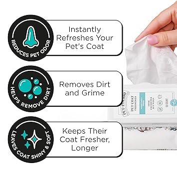 Poo-Pourri Pawsitively Fresh Deodorizing Pet Wipes - Quick Cleaning Wipes for Dogs & Cats - Plant Based Ingredients - Vet Recommended - Cleaner Odor Remover Wipes for Paw, Fur & Skin Soothing