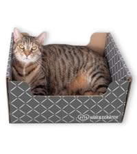 - MULTI-PURPOSE: Some cats scratch, others lounge, and many do both! Whether it’s used as a cat scratcher bowl, scratcher, chew toy, or play area, Hide & Scratch delivers feline enrichment in every form. Many cats treat it like a cozy cat scratcher house, combining the comfort of a box with the function of a cat scratcher cardboard surface—all while saving your furniture.