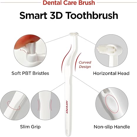 - Perfect Tartar Removal - Our ergonomic fit horizontal toothbrush is suitable for sharp & curved teeth and weaker gum. More effective using with JAYU PET Dental Gel.